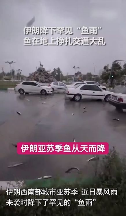 ·近日,伊朗亚苏季市暴风雨来袭时,天空降下罕见“鱼雨”。