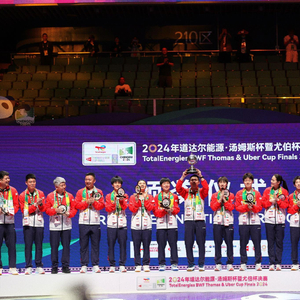 5月5日,2024道达尔能源·汤姆斯杯暨尤伯杯决赛(以下简称“成都2024汤尤杯”)的最后一个比赛日,国羽女队和国羽男队在中午和晚上“双杀”印度尼西亚队,分别捧回尤伯杯和汤姆斯杯,圆满达成此次既定目标,而成都也成为名副其实的双冠之城。在赛后的新闻发布会上,中国羽毛球协会主席张军直言:“成都确实是中国羽毛球的福地。”