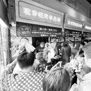 "第三届甘肃美食文化节"启动当日,天津市民争先体验天水麻辣烫"手捧花"的仪式感。