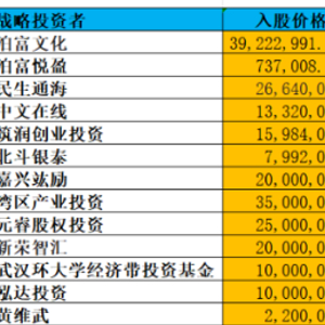 B2轮融资中,武汉文化旅游集团有限公司旗下武汉环大学经济带创新产业投资基金合伙企业(有限合伙)、泓沣资本旗下的济宁泓达致远股权投资基金合伙企业(有限合伙)分别以20元/股的价格认购了北京全品100万股新股份。此轮融资后,北京全品的估值为17.8亿元。