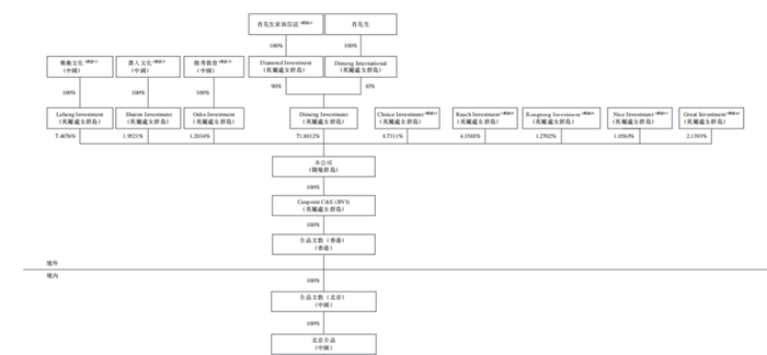 递表前,全品文教由肖忠远控制的Dimeng Investment、肖忠远的多位亲属全资持有的Choice Investment、全品文教多位执董及董事全资持有的Reach Investment、全品文教员工及前员工全资持有的Rongtong Investment和Nice Investment、肖忠远的多位朋友全资持有的Great Investment、全品文教集资股权平台全资乐衡文化全资持有的Leheng Investment、全品文教集资股权平台书人文化全资持有的Shuren Investment及全品文教集资股权平台傲秀教育全资持有的Osho Investment分别持有约71.80%、8.73%、4.36%、1.27%、1.06%、2.14%、7.49%、1.95%及1.20%的股份。
