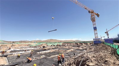 5月5日,在阿鲁科尔沁旗飞鹤(阿鲁科尔沁)智能化生态产业园项目建设现场,3个塔吊耸立,项目建设者坚守岗位、奋战一线,正在进行生产主车间桩基础承台钢筋绑扎和辅助车间独立柱基础钢筋绑扎工作。