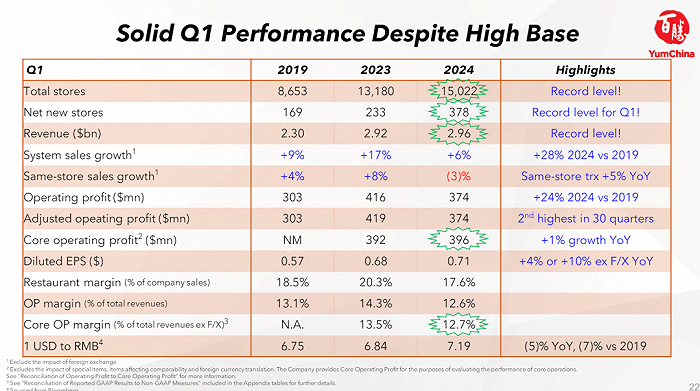 最后,我们来回顾下百胜中国交出的一季度成绩单。
