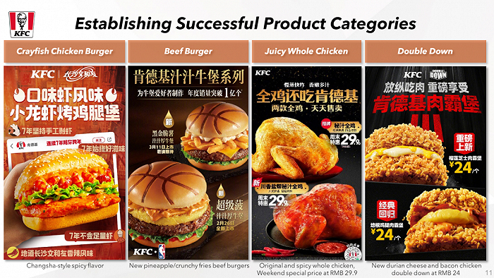谈到肯德基时,她提到,高单价产品(如肯德基牛肉汉堡和全鸡)在本季度实现了双位数的销售增长;已推出六年的标志性促销活动“疯狂星期四”继续吸引大量客流。