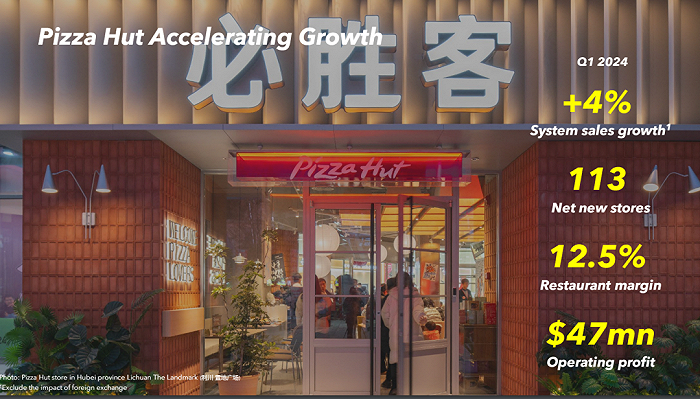 谈到必胜客时,屈翠容表示,该品牌的目标是通过加强价值主张(即性价比路线)来增强在大众市场的吸引力。“我们丰富了入门价格的比萨产品,人民币50元以下比萨的销售额在第一季度实现双位数的增长。意式肉酱比萨售价为人民币39元,已迅速成为最畅销的五大比萨之一。”