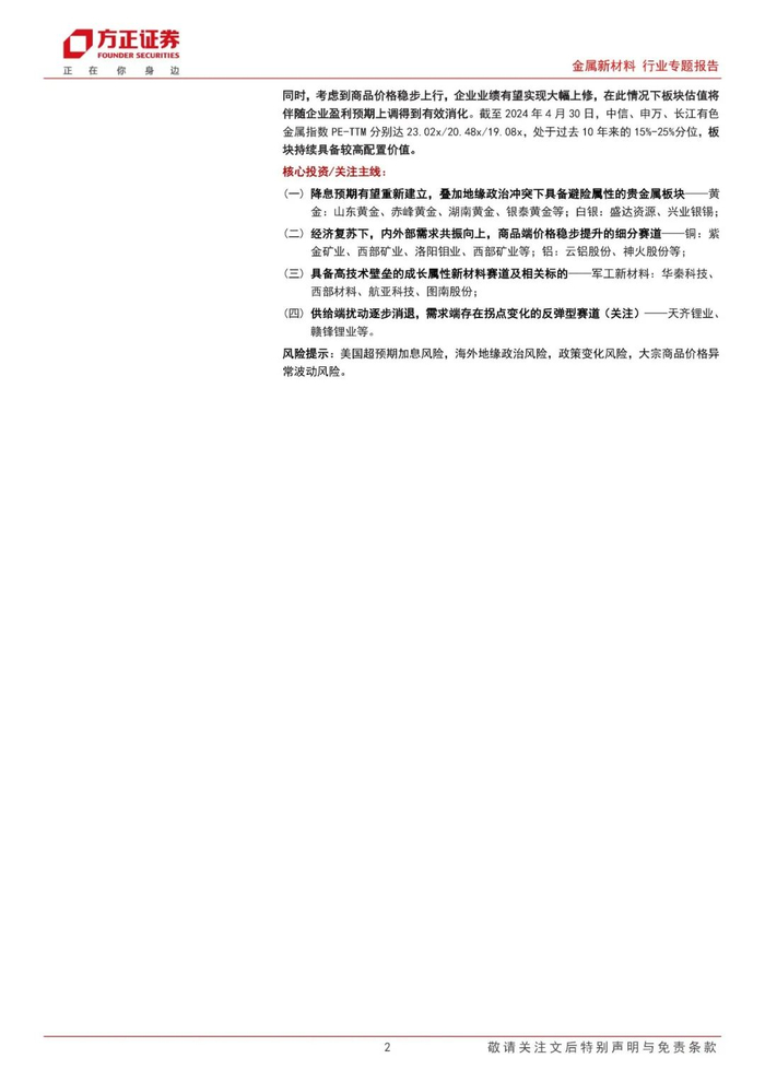 【方正金属新材料】有色金属年报/季报综述:板块/个股分化下机构偏好加强,经济复苏+降息周期下明确四赛道投资思路