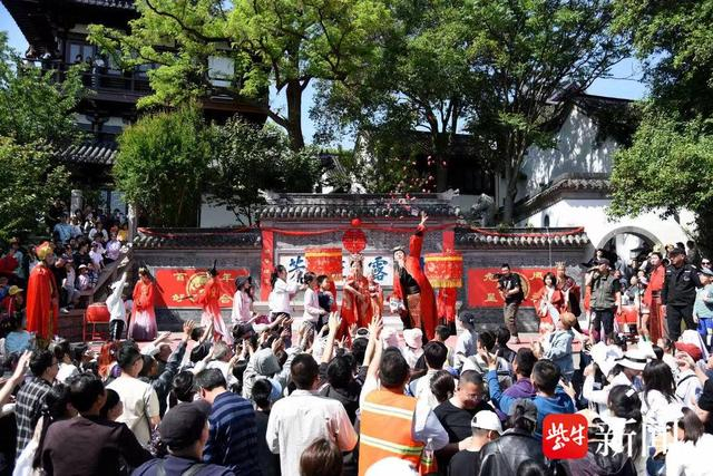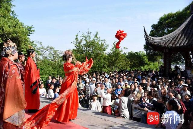 同样能偶遇“古人”的,还有焦山景区。5月1日至3日,景区准备了诗韵传千年、非遗展示、祈福祈愿、盆景展等丰富活动,节日里的枫杨广场,每天都很是热闹。