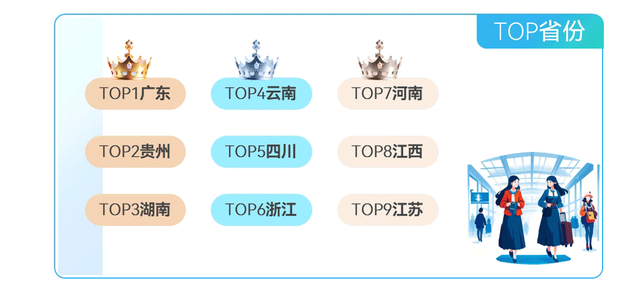 与此同时,广西人在五一期间的出游意愿也明显增强。与去年同期相比,出行客流量同比增长4.9%,广西人足迹遍布200多个国家和城市。跨省出游成为大部分广西人的选择,广东、湖南、浙江等成为首选目的地,也有部分广西人选择省内跨市或走出国门,探索更广阔的世界。