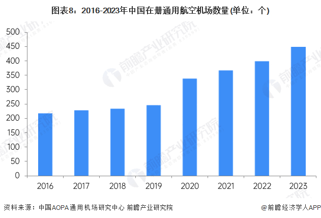 1、在册通用航空机场数量超过400个