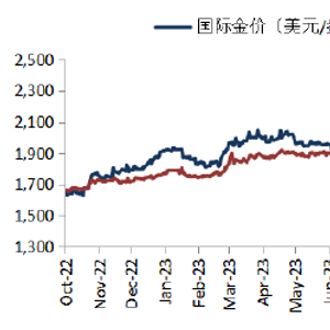 人民币计价黄金与国际金价走势比较: