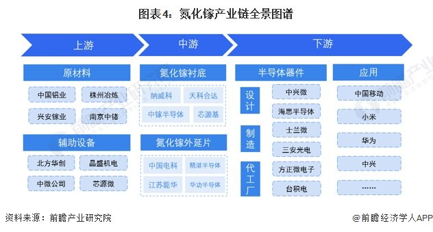 尽管碳化硅被更多地作为衬底材料(相较于氮化镓),国内仍有从事氮化镓单晶生长的企业,主要有苏州纳维、东莞中镓、上海镓特和芯元基等;从事氮化镓外延片的国内厂商主要有三安光电、赛微电子、海陆重工、晶湛半导体、江苏能华、英诺赛科等;从事氮化镓器件制造的厂商主要有三安光电、闻泰科技、赛微电子、聚灿光电、乾照光电等。