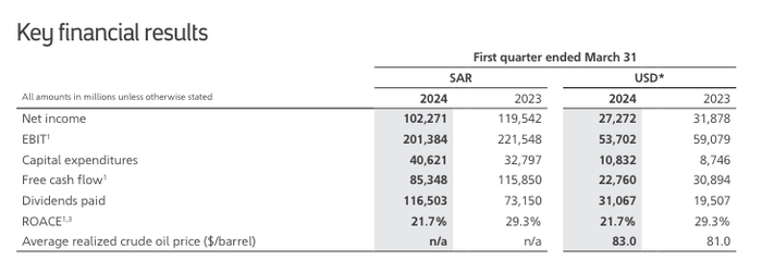 不过,该公司一季度的资本支出有所增加,相较去年同期的87.46亿美元,Q1增加到了108.32亿美元,反映了沙特阿美增加投资以抓住独特增长机会的意图。