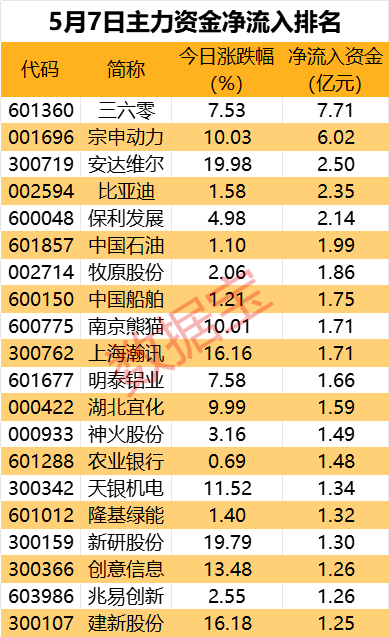 从个股来看,今日共有29股主力资金净流入超1亿元;三六零、宗申动力、安达维尔、比亚迪、保利发展5股主力净流入超2亿元。