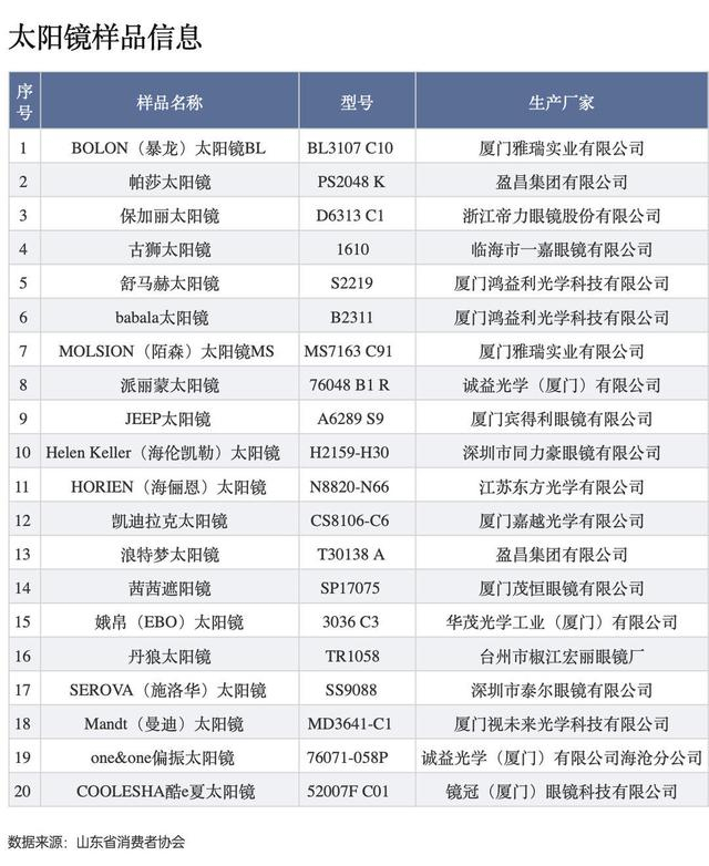 劣质墨镜更伤眼!山东省消协发布20款太阳镜比较试验结果
