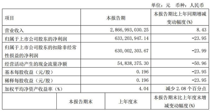 金钼股份发布的2024年一季度业绩报告显示:一季度,公司实现营业收入28.67亿元,同比增长8.43%,归母净利润为6.33亿元,同比下降23.95%,实现经营活动产生的现金流量净额5484万元,同比下降50.96%,资产负债率为10.59%,同比下降2.67个百分点。