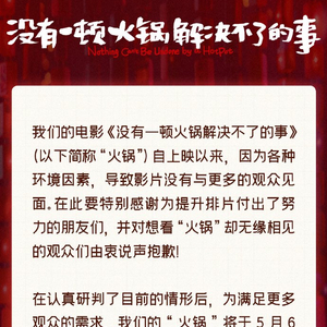 5月5日,《没有一顿火锅解决不了的事》官宣撤档。