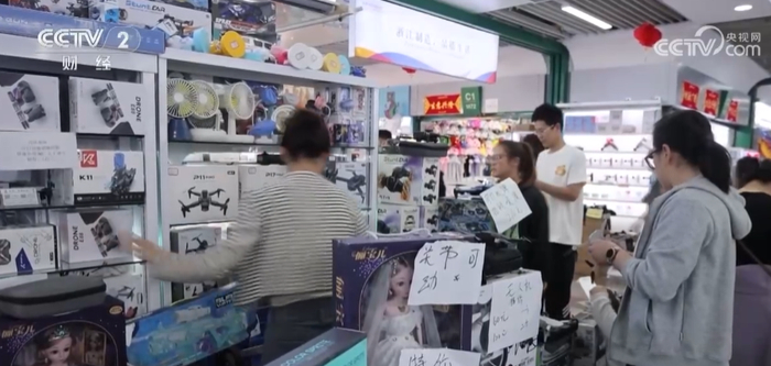 在一区,人气最为火爆的莫过于电动玩具区,可以零卖且价格不到百元的无人机备受青睐。