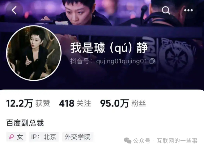 5月初,自称百度副总裁璩静的抖音账号开始在平台发布短视频,分享自己的职场思考和经历。仅仅几天的时间内,该账号的粉丝人数就破百万。