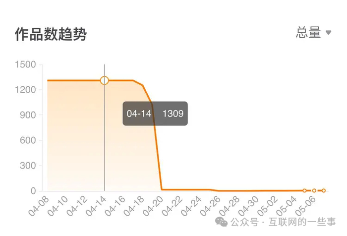 该抖音账号在今年4月14号还有1309条短视频,然而到了4月20日却清空为0,然后在5月1日开始发布第一条视频。