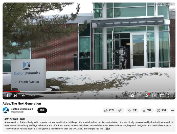 目前,这条视频的Youtube播放量已经积累到了4059万。2017年,Atlas再接再厉,用一个精彩的后空翻再度把波士顿动力送上全球热搜。