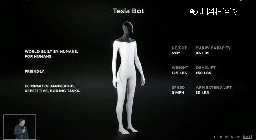 2021年的特斯拉AI Day,特斯拉PPT首发了人形机器人Tesla Bot的概念机设计方案。按照马斯克画的大饼,Tesla Bot可以完全代替人类“从事重复性/无聊的工作”。