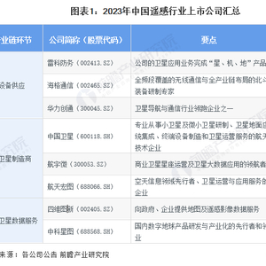 遥感产业链的上游环节包括遥感卫星的制造、发射及地面设备的制造,其中遥感卫星的制造、发射多数由非上市的央企国企及少数民营企业进行,上市企业较少,包括中国卫星和航宇微;而地面设备制造的上市企业数量相对更多,有雷科防务、海格通信、华力创通等。