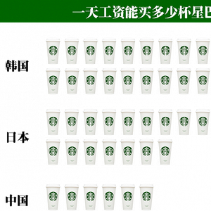 之前国际劳工组织(ILO)做了全球用户一天工资能买多少杯星巴克的调查,结果显示:按照日本的平均工资计算,一天可以喝21杯,在韩国达到了27杯,而在中国只有6杯。