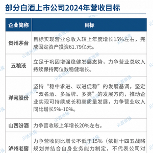 2024年是实现“十四五”目标规划的关键之年,对于各白酒企业来说,今年重点工作将围绕目标做全力冲刺。