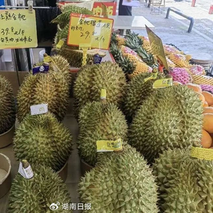 日前,记者走访了长沙多个水果摊、连锁水果店、超市,发现金枕榴莲的价格普遍在30元一斤左右,便宜的低至25.8一斤。而此前,榴莲价格普遍在每斤40至50元左右。