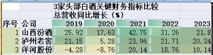 洋河总营收暂时领先,增速被汾酒、泸州老窖连续5年超越