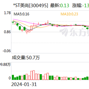 5月7日晚,*ST美尚发布公告称,根据深交所《创业板股票上市规则(2024 年修订)》第10.2.1条的相关规定,上市公司连续20个交易日每日股票收盘价均低于1元,深交所将终止其股票上市交易。截至2024年5月7日,公司股票收盘价连续19个交易日低于1元,该公司股票存在可能因股价低于面值被终止上市的风险。