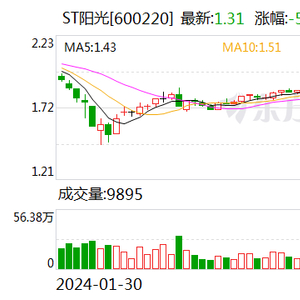 5月8日,ST阳光股价连续第三个交易日一字跌停,跌幅为5.07%,报1.31元/股,市值缩水至约23亿元。