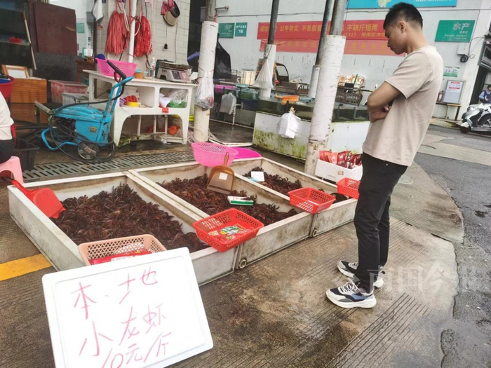 对于今年小龙虾比去年好卖且便宜的现状,韦香莲认为,今年在家煮饭的市民增多,小龙虾便宜又好吃,她现在基本每天都卖完,没有剩下小龙虾。