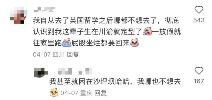因为总是被父母无条件宠爱,有人调侃,川渝儿女最大的困境就是被“困在川渝”。这种论调并没有因为错过诗和远方的遗憾,而是充满了生在川渝的满足。