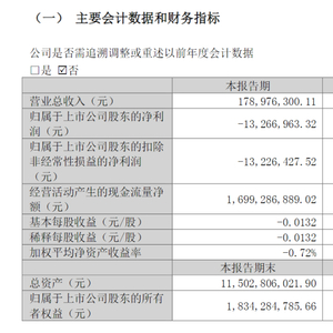 据一季报数据,弘业期货一季度营业总收入1.79亿元,同比增长8.27%;归属于上市公司股东的净利润亏损1326.7万元,同比下滑327.56%;归属于上市公司股东的扣非净利润亏损1322.64万元,同比下滑336.25%;基本每股收益为-0.0132元/股,同比下滑327.59%。