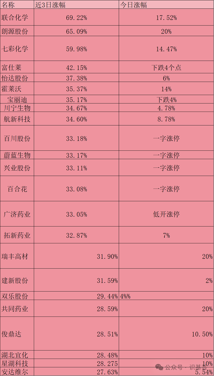 假设,蔚蓝生物要站上7板,起码集合竞价的跌停个股数量不能太难看。其次是板块的分歧只能良性,而且还不能有化工来分他的资金。大概率蔚蓝生物是断板。化工板块成为最高标扛把子。那么医药板块能否有别的个股顶上来,比如济民医疗?从合成生物过度在再生医学?这个只是一种猜测。具体发散要明天观察市场的反馈。