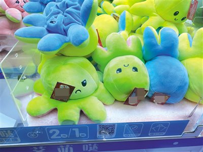 本报讯 近年来,娃娃机逐渐在各地风靡起来,各种品牌的娃娃机店铺如雨后春笋般出现,在各大商超、电玩城里随处可见。年轻人和孩子们走过路过都摩拳擦掌想“挑战”一番,要抓几件“战利品”回家。然而近段时间,“夹来的娃娃最好别放床头”这一话题冲上热搜。有网友称,部分娃娃机中的玩偶来源不明,其中不少是“三无产品”。那么,海口市面上的娃娃机里玩偶情况如何?记者进行了走访,发现部分娃娃机确实存在玩偶产品信息不全、概率未公示等情况。