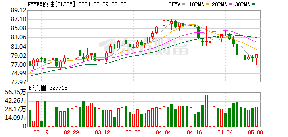 从油价表现来看,随着此前美国原油库存激增和中东紧张局势缓解,布伦特原油期货从此前逾90美元/桶的高位跳水约10美元,美国原油期货已经跌破80美元/桶关口。随着供应忧虑有所缓解,5月8日油价再度走低,布伦特原油期货价格在82美元/桶附近,美国原油期货价格在77美元/桶左右。