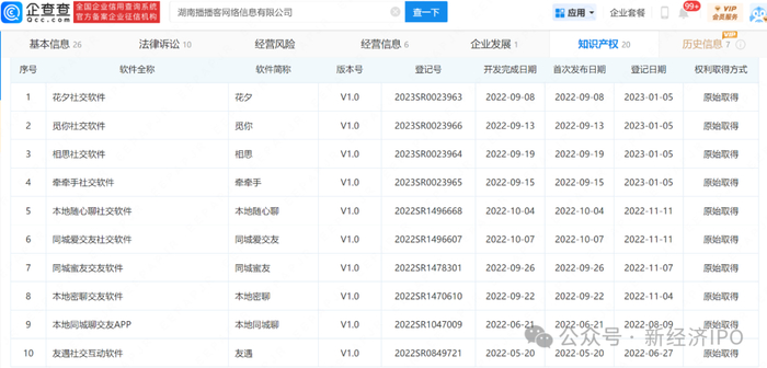 企查查数据显示,播播客旗下共有15个软件著作权,首次发布日期自2022年4月21日至2022年10月7日。