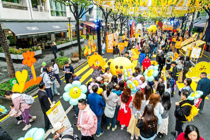 如今年4月,澎湃新闻在上海市大学路看到,创意工作室LINE FRIENDS在这条街上为旗下卡通形象莎莉(Sally)举办的快闪市集人头攒动,将这一条百米小路挤得水泄不通。据LINE FRIENDS披露的数据,该市集在一个周末吸引了超25万人流到访打卡。