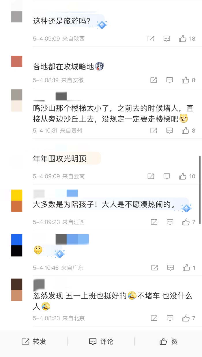 另外,还有网友提到:“现在周末很多地方也是人满为患,如果遇上一些活动,和国定假日并没什么差别,国定假期还能走得远点。”
