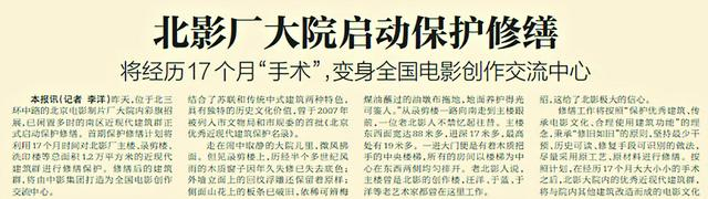 未来的北影厂,将成为集结电影创作、电影交流、电影传承等六大功能于一体的首都电影文化新地标。