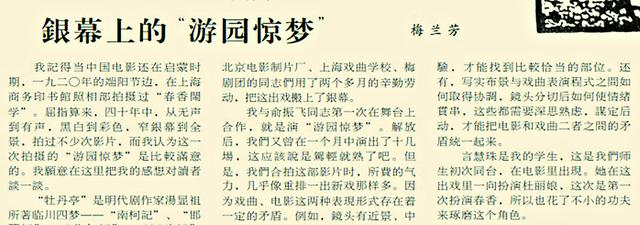 这一时期,北影厂还拍摄了不少戏曲电影,比如《杨乃武与小白菜》《野猪林》等。其中梅兰芳主演的《游园惊梦》是其中的佼佼者,也是梅兰芳生前拍摄的最后一部电影。该影片由许珂执导,梅兰芳扮演杜丽娘,昆曲表演艺术家俞振飞扮演柳梦梅。《游园惊梦》作为昆曲《牡丹亭》中的一折,是梅兰芳的拿手好戏之一,但由于电影与舞台表演形式不同,梅兰芳在拍摄《游园惊梦》电影时几乎对每一个身段、每一句唱词都进行了重新设计。拍摄完成后,梅兰芳表示:“四十年中,从无声到有声,黑白到彩色,窄银幕到全景,拍过不少次影片,而我认为这一次拍摄的‘游园惊梦’是比较满意的。”(1961年3月18日《北京日报》3版,《银幕上的“游园惊梦”》)