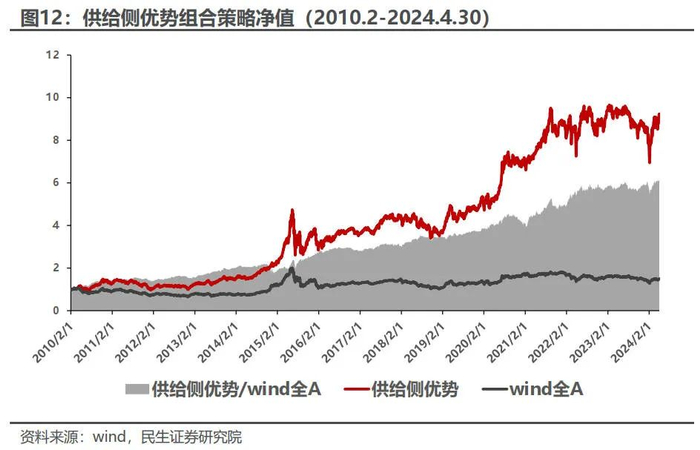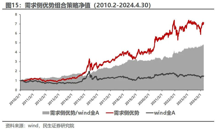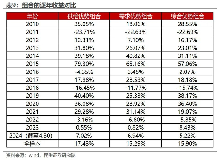 由此可以构建三种选股组合:供给优势组合、需求优势组合和综合竞争优势组合,三种组合均可以实现稳定战胜基准。