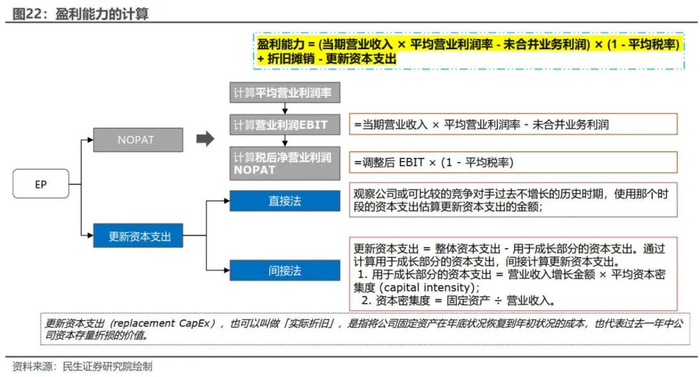 基于自由现金流的价值评估并非完美指标,将投资活动所带来的现金流出与经营活动所产生的现金流入混合计算,导致实际价值被模糊化。因而无法充分反映投资所带来的实际价值增长。基于资产负债表的盈利能力价值(EPV)为企业当前的盈利能力(EP)除以企业的资本成本,符合会计上的配比原则,被视为更可靠地反映企业实际价值的指标。