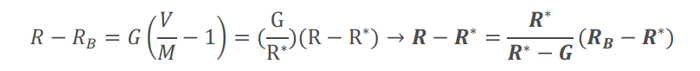 企业内在价值(V)对市值(M)的比率,等于按照市值买进企业的报酬(R)对企业资金成本(