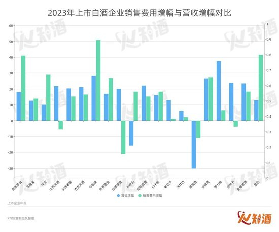 20家企业中,山西汾酒、泸州老窖、古井贡酒、珍酒李渡、迎驾贡酒、老白干、水井坊、伊力特、金种子、天佑德酒的营收增长跑赢了销售费用增长。