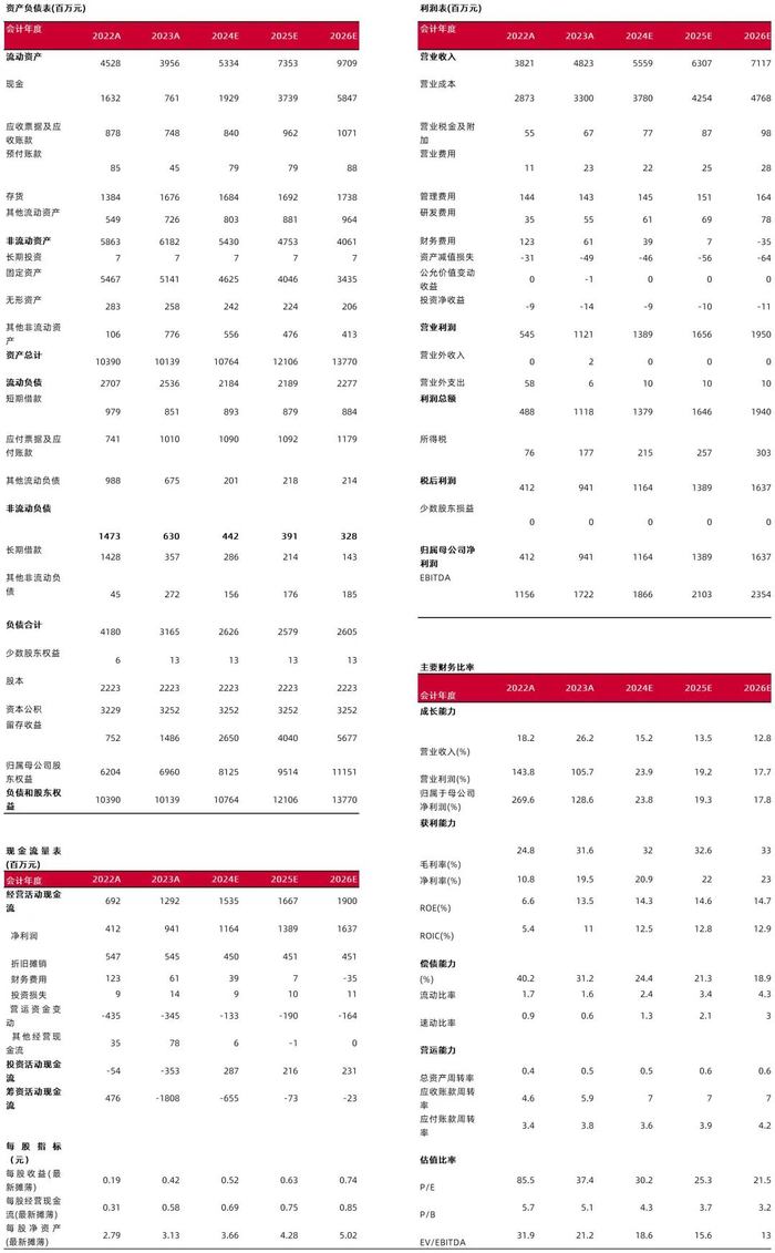 抗生素需求恢复景气提升,合成生物学项目落地增量可期。预计公司2024~2026年总营收分别为55.59亿元/63.07亿元/71.17亿元,同比增长15.2%/13.5%/12.8%,归母净利润11.64亿元/13.89亿元/16.37亿元,同比23.8%/19.3%/17.8%,对应PE分别为30.2/25.3/21.5。持续覆盖,维持“增持-B”评级。