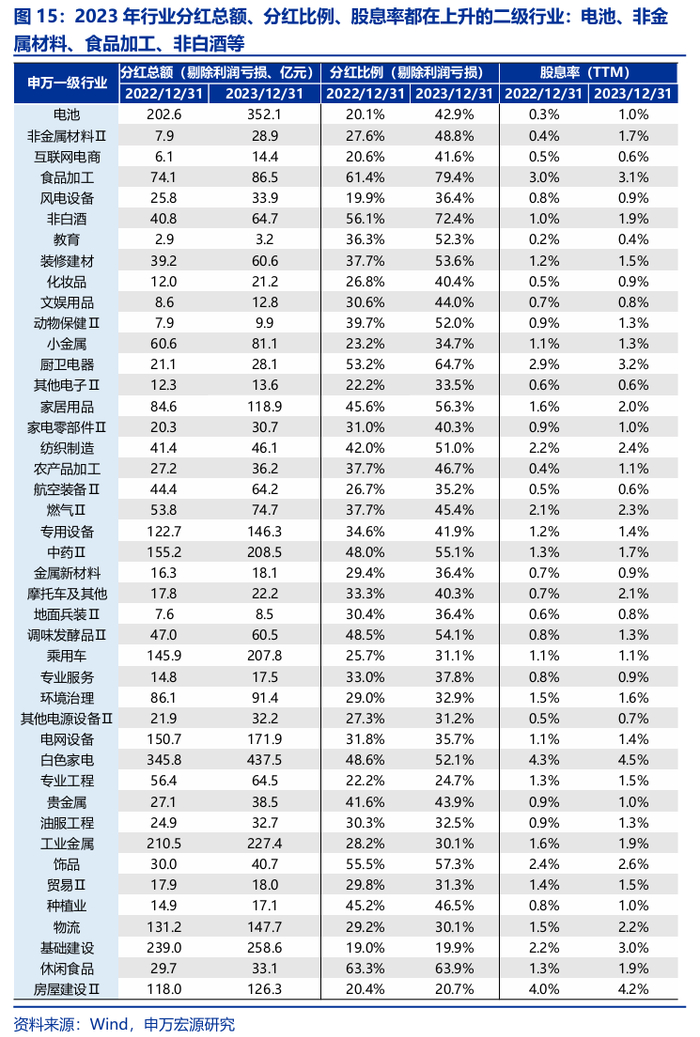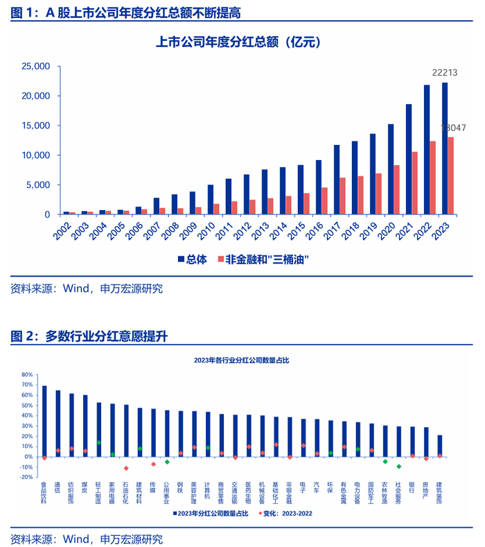【申万宏源策略】分红意愿提升明显,关注潜在股息率提升的细分领域——A股2024年一季报暨2023年报分析总结之分红篇