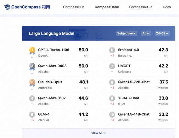 阿里云表示,与通义千问2.1版本相比,通义千问2.5的理解能力、逻辑推理、指令遵循、代码能力分别提升9%、16%、19%、10%;与GPT-4相比,中文语境下,通义千问2.5文本理解、文本生成、知识问答及生活建议、闲聊及对话、安全风险等多项能力赶超GPT-4。随着通义千问2.5的发布,阿里云表示,在权威基准OpenCompass上,通义千问2.5得分追平GPT-4Turbo,是国产大模型首次在该基准取得该项成绩。